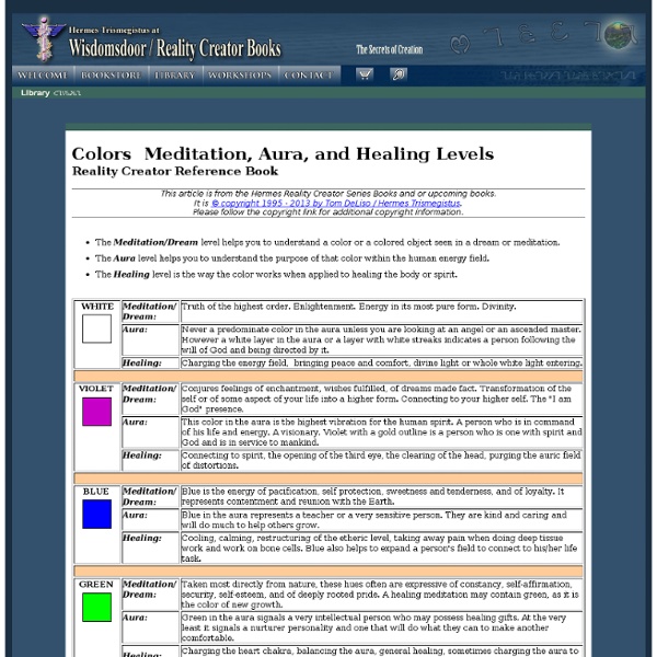 A GUIDE TO COLOR HEALING AND COLOR MEDITATION A Course of Instructions and Exercises in Developing and the color aspects of the aura. A violet light is a great help in meditation and concentration of a ... Document Viewer